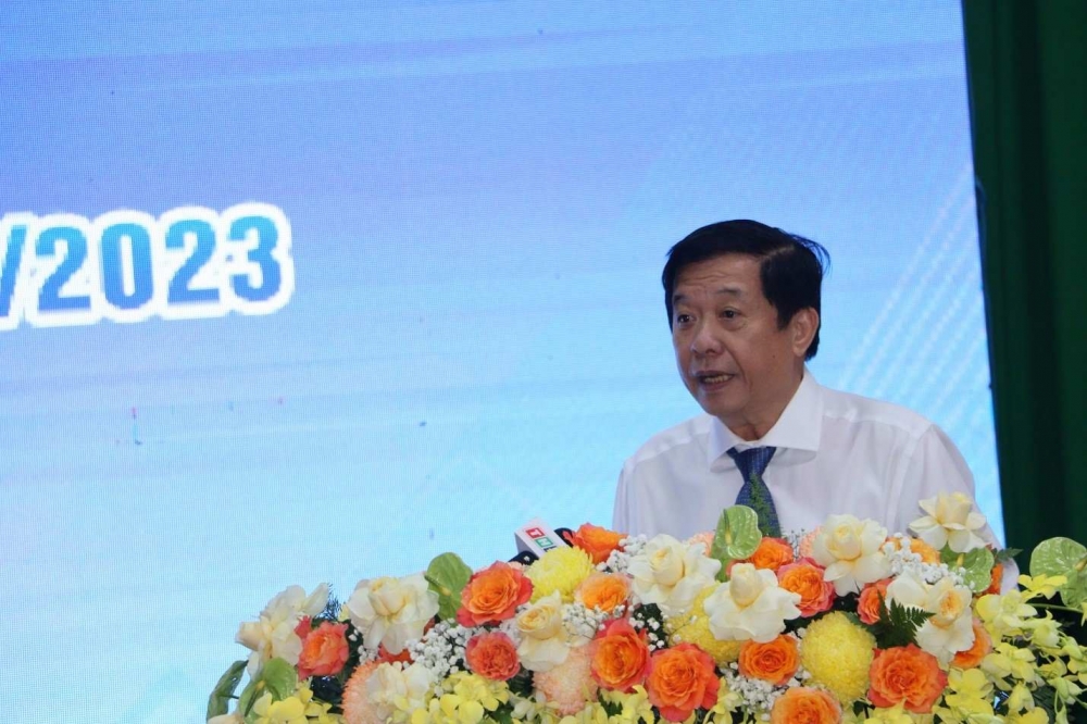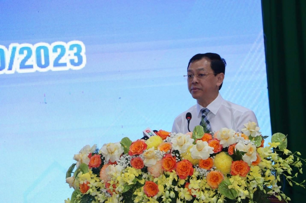 Bí thư Tỉnh ủy Vĩnh Long Bùi Văn Nghiêm phát biểu tại Hội nghị
